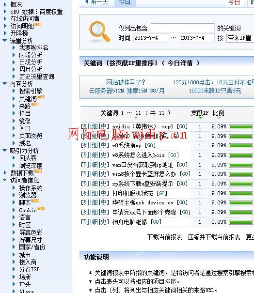我每天都要打开我要啦免费统计!前几天我下了我要啦免费统计是认为有一个js拉了我站速度!用百度统计;不知道为什么用得不好!查不到我想要的数据!今天想了想双把我要啦免费统计加在站底部了!我说我要啦免费统计有很多站长要查的功能百度统计没有!如图: