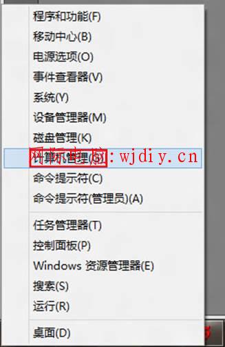 第1步、在 Metro 或传统桌面下,按键盘的“Win+X”组合热键调出快捷菜单,使用鼠标左键单击“电脑管理(G)”。如下图所示: