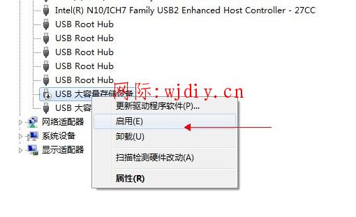 解决方法:在设备管理器中启用USB大容量存储设备,然后打开电脑即可找到U盘。