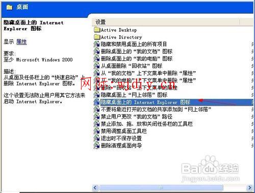 5. 右窗格中找到“隐藏桌面上的Internet Explorer图标”项目,双击打开点击查看原图
