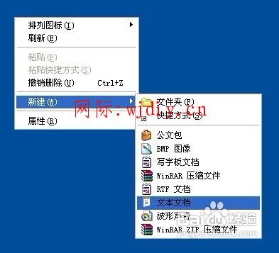 1. 在桌面空白处鼠标右键单击“新建”——“文本文档”