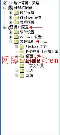 3. 在左侧窗口中依次展开“用户配置”——“管理模板”——“桌面”