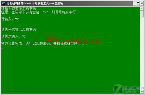 要给启动U盘设个密码 本来笔者不想设置启动U盘的密码,但这个步骤不能跳过,所以没办法只好设了一个密码。设置完后,一定要牢记你设好的密码,否则启动U盘会无法使用。