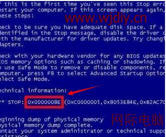 蓝屏代码0X000008E 故障图:电腦开机蓝屏