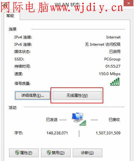 总之可以解决问题了,通过查看WLAN状态--无线属性--安全--高级设置--勾选“为此网络启用联邦信息处理标准(FIPS)兼容(F)”的设置操作,手动启用Win8.1系统的“为此网络启动联邦信息处理标准(FIPS)兼容”这一功能,能够加强Win8.1系统无线网络连接的兼容性,改善Win8.1在使用无线网络过程中的掉线等故障问题。