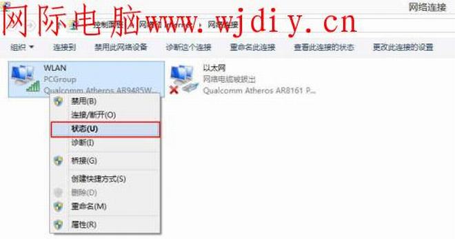 网际电腦的朋友在Win8.1系统中使用无线网络连接时偶尔会遇到“连接受限或无法连接WiFi”的问题,造成WiFi连接失败或者频繁掉线问题,或者已经连接上了,还是不能上网,可以试试看看!在无线网络连接设置窗口中,找到当前连接的无线网络“WLAN状态”,右击查看“状态”。