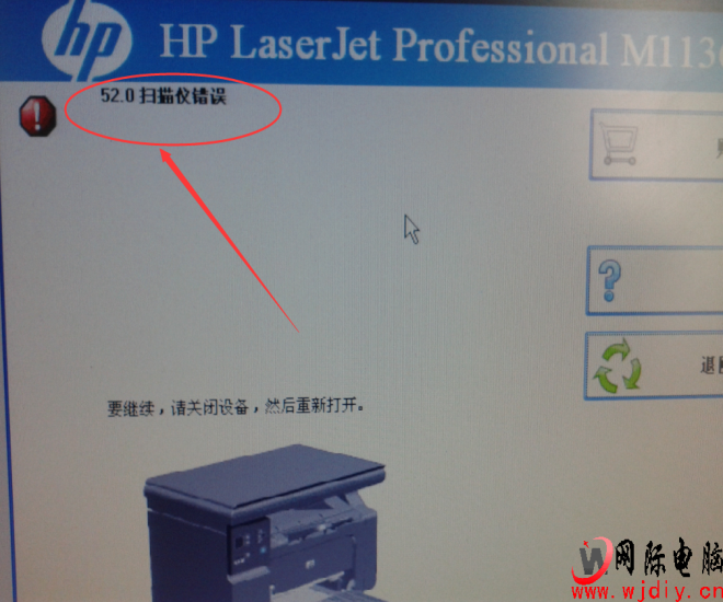 HP1136打印提示错误52.0扫描仪错误