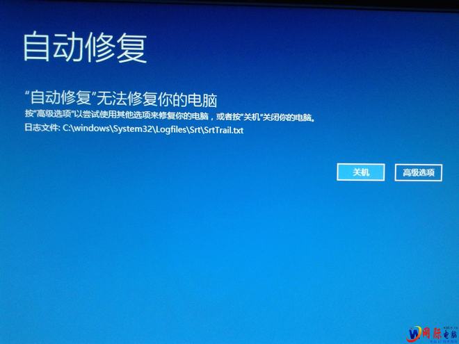 电腦开机就停在win8标识那个界面,小圆圈不停的转就是不进系统,等上10分钟左右电腦就自动重启了,重启后提示进入自动修复,显示正在诊断你的电腦,最后出现提示:“自动修复”无法修复你的电腦 日志文件:C:\windows\System32\Logfiles\Srt\Srttrail.txt 如上图。
