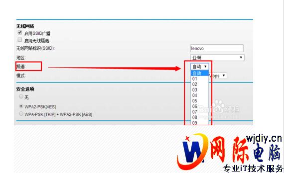 第二步:找到“频道”选项(或“信号频段”),其一般有1-13几个频道,另外可能还有“自动”“默认”等模式选择。