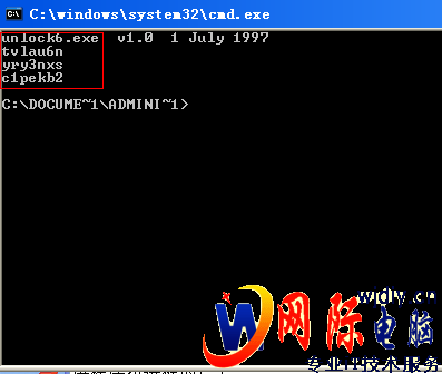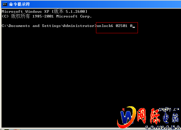 2;在另一台 xp的电腦上运行附件-命令提示符 。键入“unlock6 xxxxxx 0” x代表得到的5位溢出码