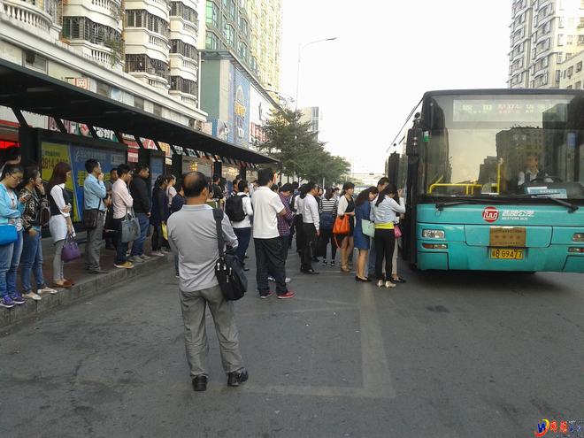 下面是潜龙花园公交站台拍摄的:一次上不完;公交车上不了;等下班