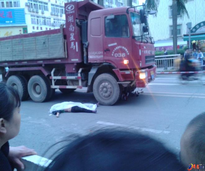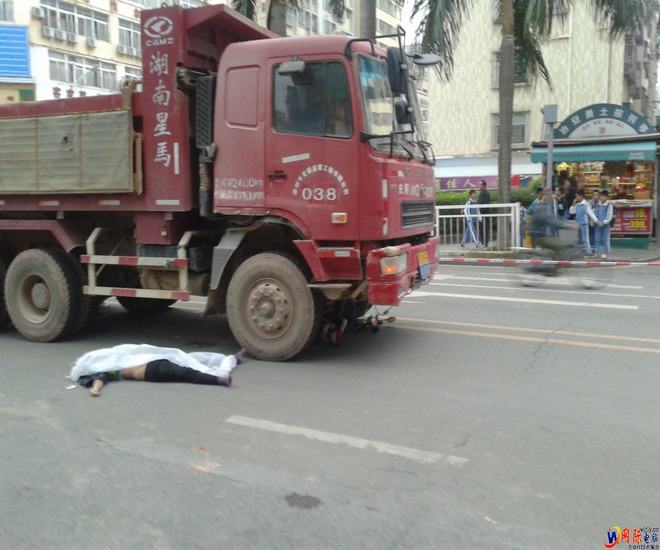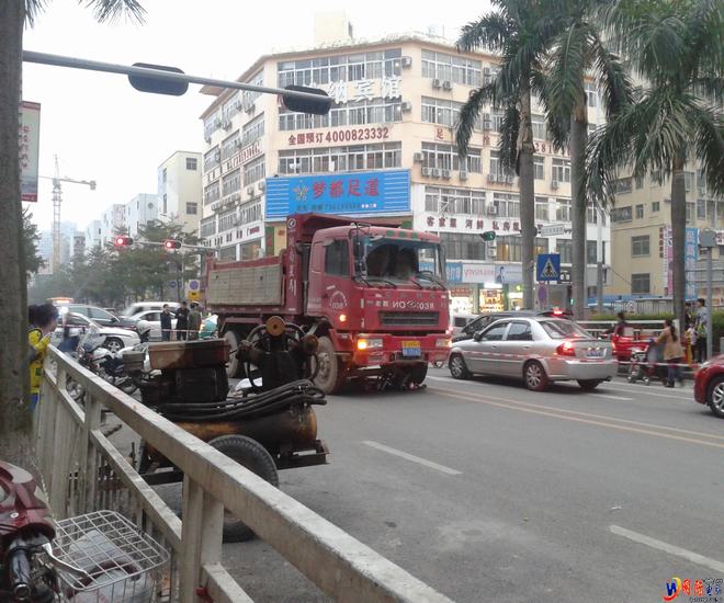 电动车已在泥头车下面去了