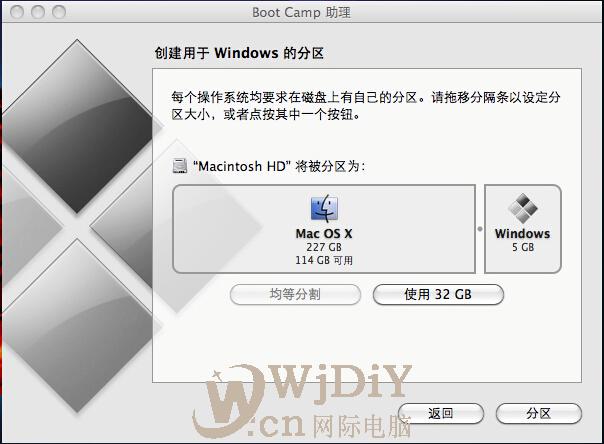 做单分区只需要在“应用程序”“实用工具”下启动Boot Camp助理,拖动中间可以调整分区大小,然后点击分区就可以完成分区,放入windows安装光盘,重启电腦,按住option键,直至出现光盘盘符,这样就可以正常安装windows了,安装好windows后插入Mac OS X安装盘,安装Boot Camp,这里就包含了Windows的驱动。