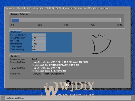 没办法只有按下复位键重启电腦,因电腦之前装有一键GHOST备份,于是果断还原试一下,但是还原之后还是如此。电腦开机还是在“正在启动 windows”界面卡住。