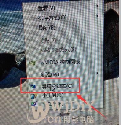 既然写了就写的完整一点,再介绍一下显示器分辨率调整方法,以Windows 7操作系统为例,在桌面空白处,点击鼠标右键,在弹出菜单中选择“屏幕分辨率”。