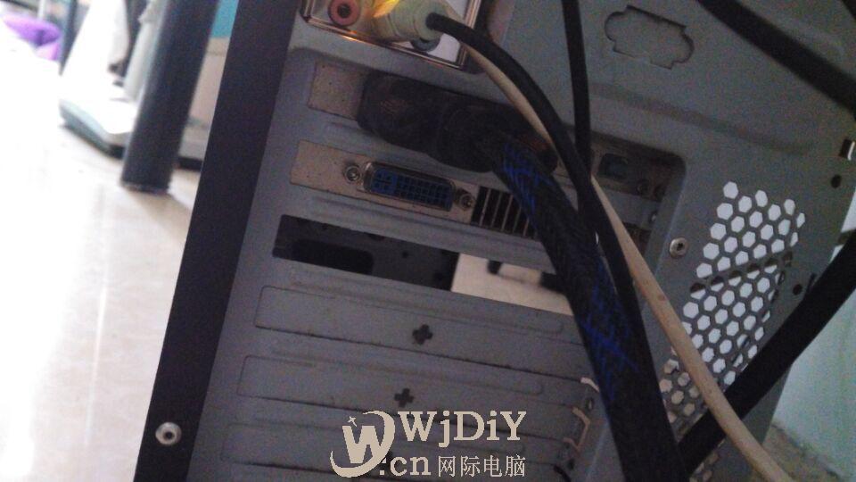 见此情况第一反应是显示器没有调节好吧,按了显示器下方几个按钮也不行,就觉得很奇怪了,在店里明明是好的呀,为什么换个地方就这样了呢?关机查看是不是显卡金手指的问题,用橡皮擦擦了一下金手指,还是不行,就看了会显卡接口是否插错了。呵呵,于是换个插槽就好了: