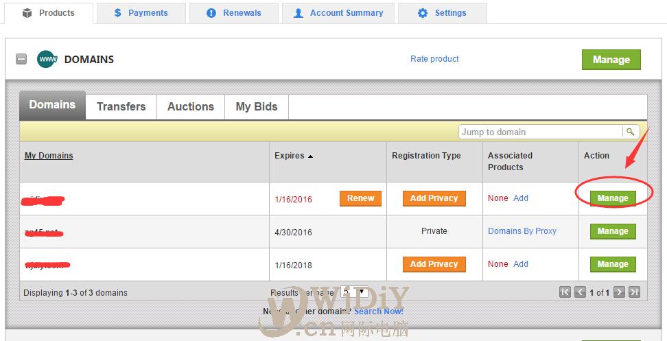 第三步、进入域名管理面板,点击Locked后面的Manage解锁,如下图所示: