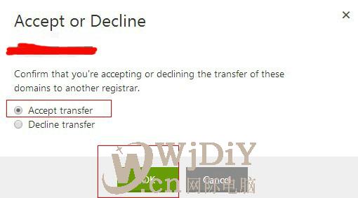 看到你要转出的域名,选中,然后点击accept/decline,点击accept同意转出即可。