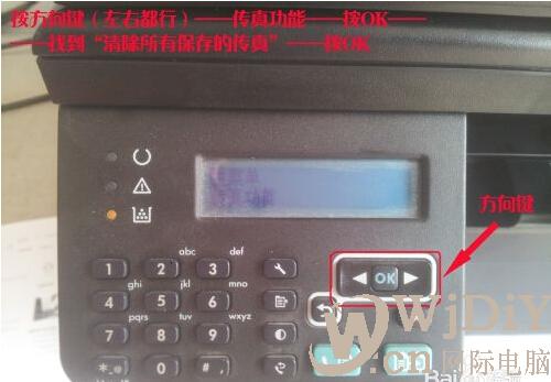 第二步:按方向键(左右都可以)找到“传真功能”——按OK——按方向键找到“清除所有保存的传真”——按OK