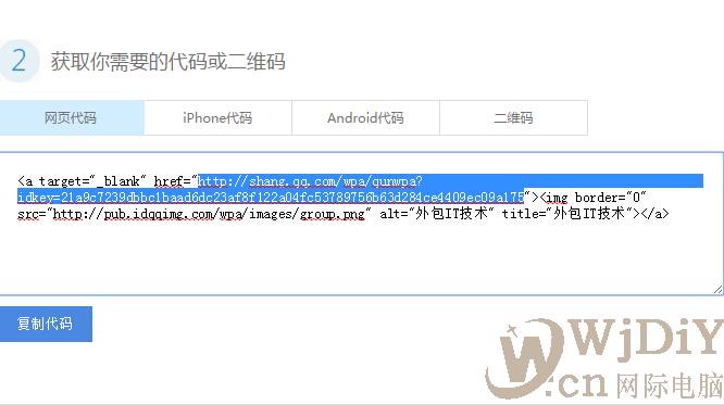 第三步:在右边就可以看到自动生成基于网页、iPhone、安卓的QQ群代码,只要直接复制就能用了。如下图: