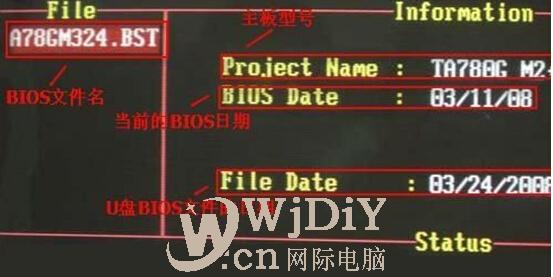 3.电腦从U盘启动后,屏幕将显示刷新BIOS界面,可以看到其中的各项参数,这里我们选中需要刷新BIOS的文件,按下回车键,电腦将自动完成BIOS刷新操作。