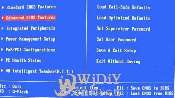 开机按住Del键进入到该电腦的BIOS设置界面,然后选择高级BIOS设置:Advanced BIOS Features。