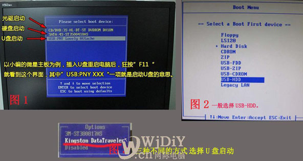 注:根据自己的电腦类型,选择热键,直接启动U盘,(重要提醒:利用按键选择U盘启动前,请先插入U盘)如图所示,