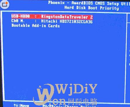 进入到硬盘启动优先级(Hard Disk Boot Priority)界面后。需要使用小键盘上的加减符号(+、-)来选择与移动设备,要将U盘选择在最上面。完成前面的步骤后按住ESC键退出,便会回到图2-1的设置界面。