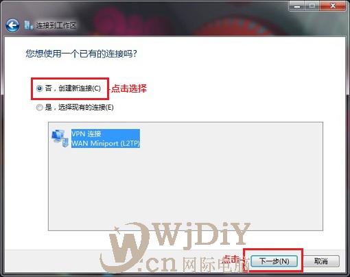 第四步:如果已经存在其他连接,则在这一步选择”否,创建新连接“;如果没有,则这一步将被跳过(如图)