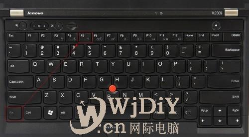 笔记本上面都有一个红色的fn键,这个就是所谓的功能键,配合f1到f12上面的红色功能使用。联想笔记本一般都是fn+f5。