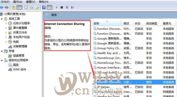 在开始菜单下面的搜索框中输入服务——找到服务后单击打开即可。找到Internet Connection Sharing (ICS)服务,单击启动,然后右击选择属性后——将其改为自动启动,这样以后就不用每次都手动启动了。