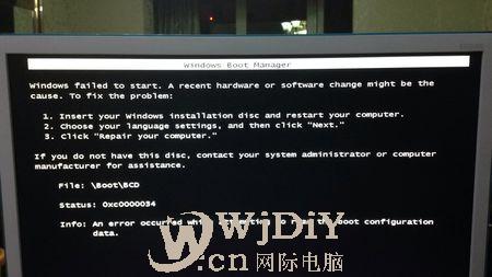 (6) 如果屏幕提示“Disk Boot Failure(无效的启动盘)”,则是系统文件丢失或损坏,或硬盘分区表损坏,修复系统文件或恢复硬盘分区表即可。