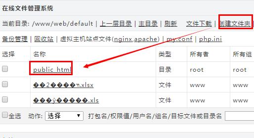 这是因为创建整站时候在/www/web/default/下没有生成public_html文件夹,需要手动新建public_html文件夹,然后将站点放进去,就能通过IP地址访问phpmyadmin了。