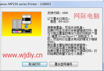 佳能打印机MX230显示请检查墨水 1688 黄色灯亮 已经加了墨水 但还是不能打印 是什么原因?怎么解决?