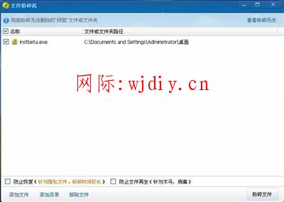 要想彻底的删除某个文件,可以使用“文件粉碎机”工具,现在很多的安全工具都带有这样的功能(如360安全卫士),在“文件粉碎机”中,添加进需要删除的文件或文件夹,最后点击“粉碎文件”即可(如图2)。文件粉碎机就会在删除文件的同时,在文件留下的“空位子”上多次写入其它的数据,将原文件的数据彻底覆盖,就能避免这些文件被恢复了。