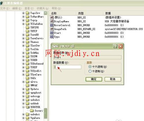 打开注册表编辑器,依次展开如下分支[HKEY_LOCAL_MACHINE/SYSTEM/CurrentCntrolSet/Services/USBSTOR],在右侧的窗格中找到名为“Start”的DWORD值,双击,在弹出的编辑对话框中将其数值数据修改为十六位进制数值“4”。点“确定”按钮并关闭注册表编辑器,重新启动电脑,使设置生效。重启后,当有人将USB存储设备连接到电脑时,虽然USB设备上的指示灯在正常闪烁,但在资源管理器当中就是无法找到其盘符,因此也就无法使用USB设备了