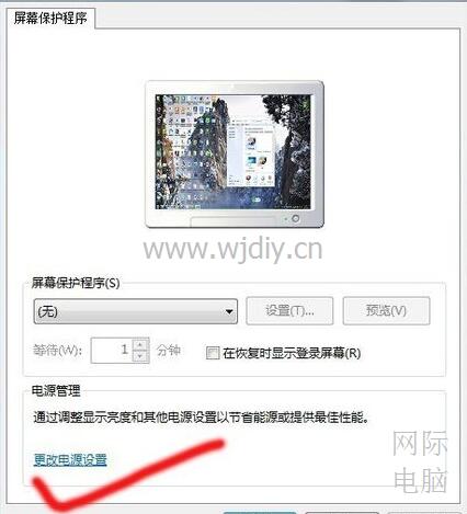 3.在屏幕保护程序窗口中点击更改电源设置