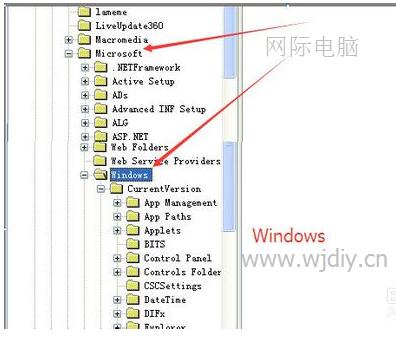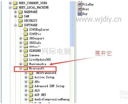 是展开“SOFTWARE”哦,在其下面有一个“Microsoft”的项。
