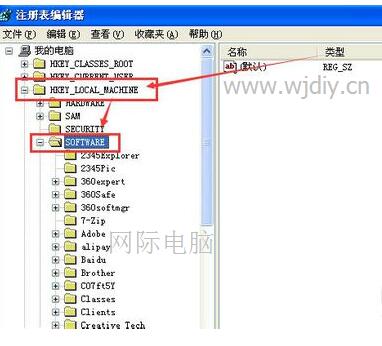 到达“SOFTWARE”键值下,然后再进行下一步的操作。