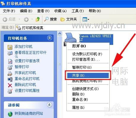 共享打印机无法连接 打开打印机主机电腦“开始”--“设置”--“控制面板”--“打印机和传真”,右键单击要共享的打印机,选择“共享”就可以了;如下图