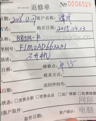 华硕主板B85M-K返修单要多久?一般返修都是在二周左右有结果的!这张返修单上写得很清楚!
