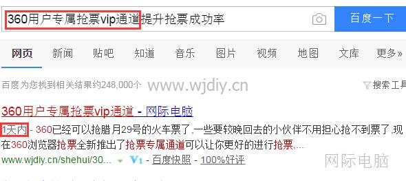 写什么样的文章使百度秒收录?什么时间发文章百度收录快?今天我写了一篇” 360用户专属抢票vip通道“我刚发布百度就就收录了;就是秒收录;好久没有这个现象了!3分钟后修改了标题为‘360用户专属抢票vip通道提升抢票成功率’可收录的还是我没修改这前的标题如下图: