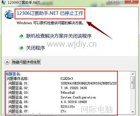 12306订票助手.net一双击就显示已停止工作。详细信息如下,是怎么回事啊? 12306订票助手.net出现一个问题,导致程序停止正常工作 请关闭该程序如下图