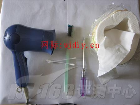 电吹风(风筒):主要功用为吹去机箱内一定的尘埃,电吹风根据个体差异不同,风量也有大有小。一般选用一个大小中等的电吹风即可。使用时尽量是用冷风档。电吹风能吹去一些附着得不是很牢固的尘埃,在清洁的前期和后期能起不错的作用。