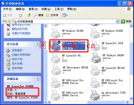 在“打印机和传真”窗口中,完成设置后打印机图标会显示正确的状态。如图 2 打印机状态所示: