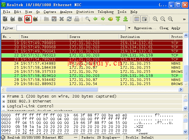 在最上面的Interface中选择电腦真实的网卡(默认下可能会选中回环网卡),选中网卡后,下面会显示网卡的IP地址,如图中是172.31.30.41,如果IP正确,说明网卡已经正确选择。