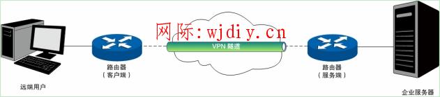 VPN通过隧道技术在两个站点间建立一条虚拟的专用线路,使用端到端的认证和加密保证数据的安全性。典型拓扑如下图所示: