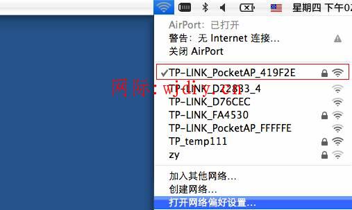 STEP2:点击“打开网络偏好设置”,进入“网络偏好设置”界面,如下图所示。