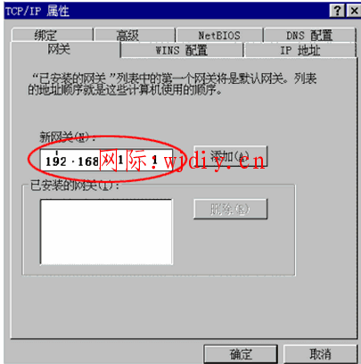 2.网关:在新网关里面填写:192.168.1.1 点击添加。