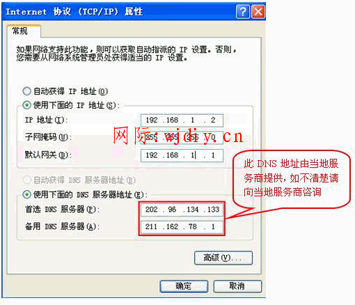 DNS服务器由当地的网络服务商提供,若不清楚,请向服务商咨询。